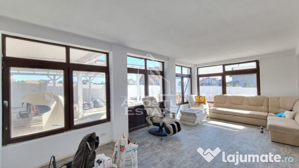 - terasa din zidărie de 32 mp cu placa de beton deasupra și închisa cu geam termopan.