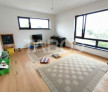 Parterul este format din bucatarie cu dinning, dormitor, 2 bai, camera tehnica si un living spatios.