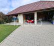 Cele doua garaje dispun de actionare electrica si de baie proprie, ideala pentru terasa acoperita, in vreme ce accesul in curte se face pe o poarta automatizata. Curtea este pavata, iar in curte se mai afla doua terase, iar accesul in pivnita se face tot din curte.