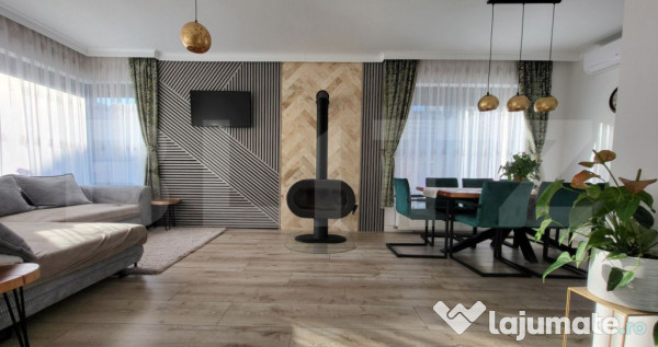 Vă propunem spre vânzare o casă individuală de tip P+E situată în localitatea Dezmîr, judeţul Cluj — o locuinţă contemporană, complet utilată şi finisată la standarde înalte, situată într-o zonă liniştită, aproape de natură.
