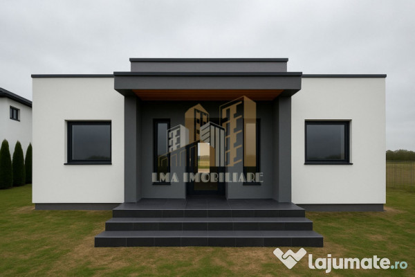 Construită pe un teren generos de 500 de metri pătrați, casa se desfășoară pe un singur nivel și oferă o suprafață utilă de 100 de metri pătrați, atent compartimentată pentru a răspunde nevoilor unei familii moderne. Zona de zi este reprezentată de un living spațios cu bucătărie open space de 50 de metri pătrați, gândit ca spațiu central al casei, unde confortul și funcționalitatea se îmbină perfect. Restul suprafeței este distribuit în trei dormitoare luminoase, o baie matrimonială și o baie de serviciu.