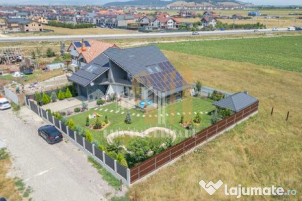 Proprietatea dispune și de un foișor închis de 18 mp și o grădinăamenajată in care regasim si un mic lac cu peste, iar curtea este dotată cu sistem de irigație pentru gazon.