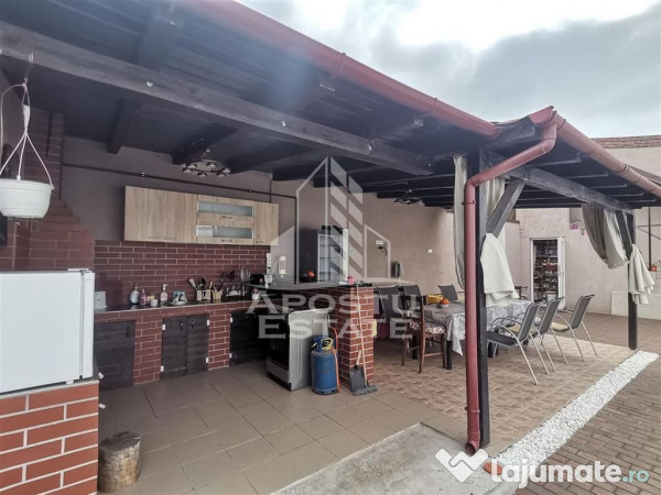 In curte este realizata o terasa spatioasa cu zona de barbeque si bucatarie si baie separata.
