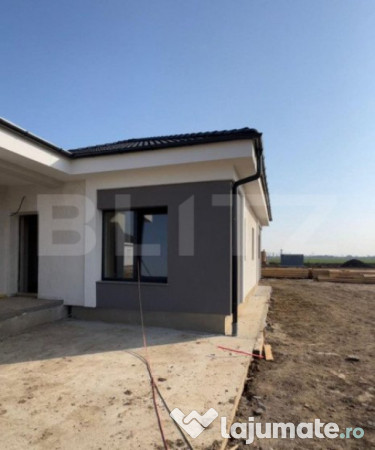 La Cheie: casa este livrată la cheie cu gresie import Italia, usi interioare din MDF, prize si intrerupatoare cu rama de stica, cele 2 bai complet utilate