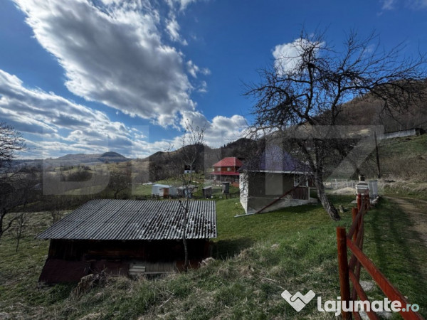 Blitz propune spre vânzare o casă cu anexe situată într-o zonă montană, ideală pentru cei care caută liniștea naturii. Casa principală dispune de 2 camere spațioase, un hol, o cămară utilă pentru depozitare și un subsol. În aceeași curte se află și o anexă recent renovată, care include o cameră confortabilă. Pe lângă acestea, există o anexă special destinată pentru depozitarea lemnelor, precum și o livadă de 70 de pomi fructiferi proaspăt plantați. Sura cu grajd, construită acum 15 ani din lemn de brad, adaugă un farmec rustic proprietății. Întreg terenul are o suprafață de 8324 mp, pe care se găsesc și alți pomi fructiferi, oferind numeroase posibilități pentru dezvoltarea unei gospodării autonome.