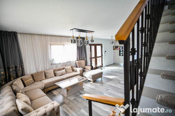 Compusa din: living, bucatarie, 4 dormitoare, 3 bai, dressing si doua foisoare, dintre care unul cu beci. Proprietatea dispune de toate utilitatile, centrala termica proprie, gaz, curent, apa, internet etc., precum si parchet, gresie, faianta, ferestre cu geam tip termopan.