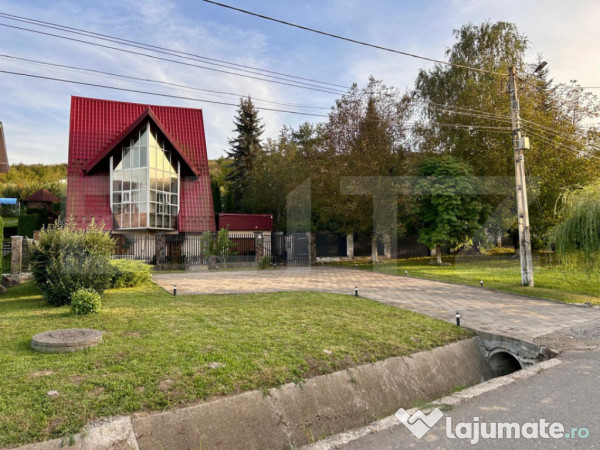 Casa dispune de sistem de alarmă, camere video, poarta acces si ușă garaj acționate electric si se vinde mobilată/utilată.