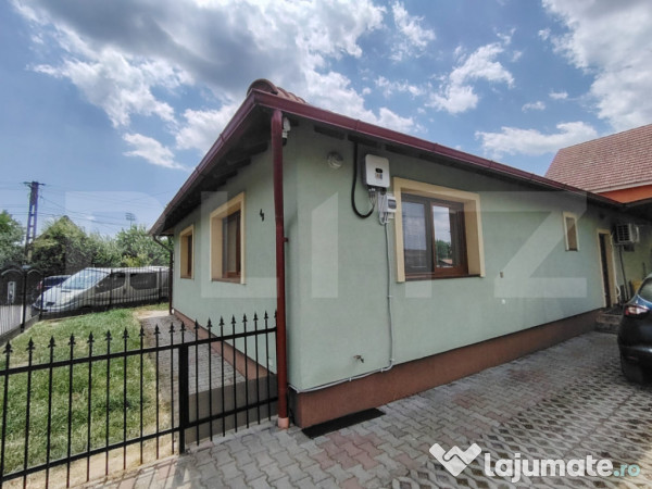Accesul auto este facilitat de o alee privată cu locuri pentru două autoturisme și o copertină adiacentă. Proprietatea dispune de o magazie, o poartă de acces automatizată și se află pe o stradă înfundată, cu trafic redus – perfectă pentru liniște și intimitate.