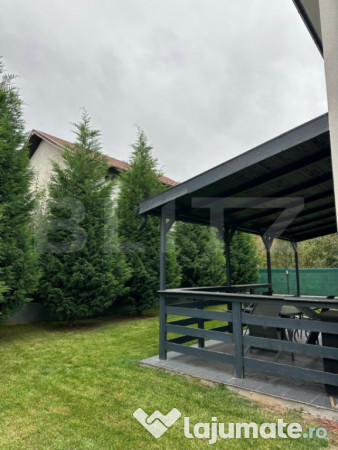 Curtea este amenajată cu gazon și sistem automat de irigare. Ofera loc de parcare și garaj.