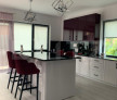 Bucătăria este mobilată la comandă din MDF. Blatul este din granit, atât la bucătărie cât și la insulă. Casa este utilată complet. Electrocasnicele sunt premium.