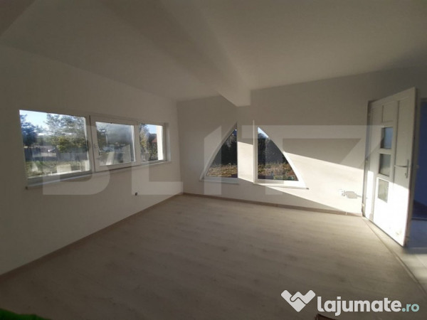 Living spațios, pregătit pentru a fi transformat într-o bucătărie open-space, cu toate utilitățile trase (apă, canalizare, prize). Dacă preferați o bucătărie separată, aveți opțiunea de a amenaja un alt spațiu la parter care dispune de racorduri.
