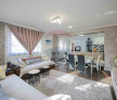 -living open space spațios, cu zona de luat masa, iar bucătăria are și cămară.