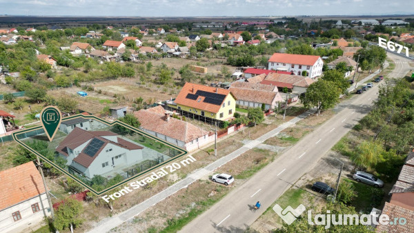 Construită în 2021 din caramidă, casa P+M din cărămidă are o suprafață construită de 232 mp si o suprafață utilă de 150 mp și un teren generos de 684 mp cu un front stradal generos de 20 ml cu acces auto pe o poartă din fier forjat acționată electric. Proprietatea este complet mobilată cu mobilier modern făcut la comandă, iar toate electrocasnicele sunt încorporate, inclusiv cuptor electric, microunde, mașină de spălat vase, frigider Side-by-Side cu gheață și apă rece, răcitor de vinuri și dedurizator de apă.