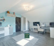 Parterul include un living spațios și luminos cu bucătărie open-space (35 mp), o cameră de zi, dormitor, baie cu cadă, baie de serviciu cu mașină de spălat și de uscat rufe, debara, birou și cămară. Mansarda dispune de dormitor matrimonial, dressing generos și o baie elegantă cu duș.