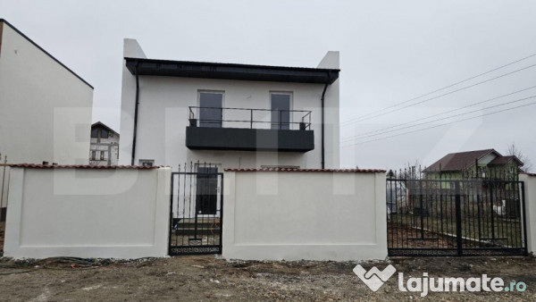 Blitz va propune spre vanzare o casa P+1 (115 mp utili) cu 140 mp construiti + 24 mp de terasa, cu 500 mp de teren, din BCA cu o fundatie de 1,4 m din beton B200, unde s au folosit 10 bare de 12, iar stalpii si placa fiind din beton B400, cu 8 bare de 12. La parterul casei regasim un living cu bucatarie open space avand posibilitatea de a inchide bucataria, o baie si o camera tehnica iar la etaj avem 3 dormitoare, baie si balcon. Casa a fost construita pentru a avea cheltuieli minime ce tin de utilitati, cu simt de raspundere din materiale de cea mai buna calitate, fapt care se poate demonstra cu ajutorul pozelor si a filmarilor din timpul construtiei. Este izolata cu polistiren de 10 cm, tencuita manual, s au dat 2 maini de adeziv dupa care a fost aplicata decorativa siliconata. Acoperisul din tabla a fost montat cu coltare si orsuruburi, s-a folosit folie de aluminiu, folie anticondens, 3 straturi de vata bazaltica de 10 cm, tamplaria este asemenea de cea mai buna calitate, Salamander tripan. Casa dispune de incalzire prin pardoseala Uponor care se face cu ajutorul unei centrala pe butelii gpl( fiind posibila montarea uni pompe de caldura la cerere si racodradea la gaz in viitorul apropiat), put forat, fosa ecologica, apa de la retea canalizarea si gazul fiind in curs de conetare. Finisaje folosite pentru interior sunt in ton cu restul construtiei. Strada pe care se afla proprietatea este de 9 metri cu piatra concasata, gardul fiind zidit din BCA. Pentru si mai multe detalii va asteptam la vizionare!