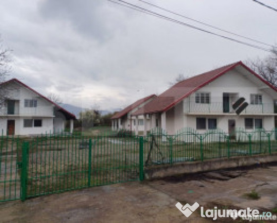 Casa este partial mobilata fiind construita pentru destinatia de Pensiune. Imobilul se afla pe un teren mai mare cu alte doua case aflate si ele la vanzare dar se va dezmembra in functie de cumparatori, putand fi vanduta individual sau toate trei imobile. In poza imobilul este cel din stanga.