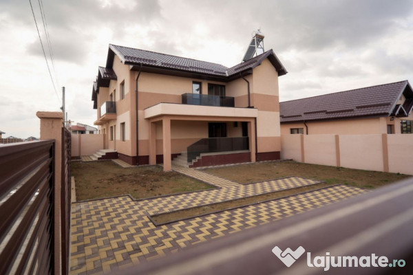 Blitz va propune spre achiziție o vila foarte frumoasa cu o suprafata de 160 mp,teren 300 mp,echipata modernist,aproape de întrarea în cartier.Având la parter un living foarte mare,bucătăria mare,la fel și baia,cat si o terasa generoasa,la etaj se găsesc 3 dormitoare generoase,fiecare având balcon,dar și 2 bai la etaj.Finisajele sunt de calitate, balustrade interioare cat si cele exterioare sunt din sticlă, izolata cu polistiren de 10 cm,vopseaua folosita la exterior este siliconata,beneficiază de centrala pe peleti,incalzirea prin pardoseala,panou solar pentru apa calda,dar și panouri fotovoltaice,implicit costurile cu întreținerea vor fi foarte mici. Pentru mai multe detalii, va aștept la vizionare!