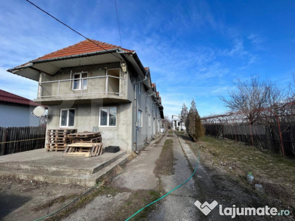 Blitz va propune spre vanzare o casa P+1 de aproximativ 200 mp utili si o hala de peste 150 mp, construite pe un teren de 2083 mp. Terenul are o dubla deschidere de 16 ml, utilitati precum curent apa si gaze sunt trase pe proprietatea dar mai regasim si un transformator care a fost folosit pentru activitatea ce se desfasura in hala. Casa este la stagiul de semi-finisat, racordata la toate utilitatile, beneficiaza de centrala terminca pe gaz, este construita din bca si are acoperisul de tigla. Hala se poate folosi pentru orice fel de activitate iar deschiderea dubla si suprafata de teren foarte mare fac din proprietate sa fie perfecta pentru cineva care doreste o casa de locuit si sa si desfasoare o alta activitate acasa. Accesul este rapid catre mai multe strazi si zone de interes. Pentru mai multe detalii va asteptam la vizionare!