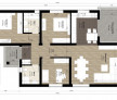 Locuința oferă un spațiu de locuit eficient și luminos, având o separare clară a zonelor:
