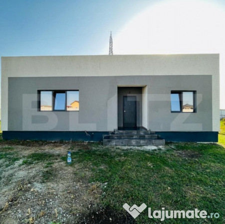 Blitz va propune spre achizitionare o casa moderna, recent contruita cu materiale si finisaje de calitate situata in zona Jieni , intr-o zona linistita de case. Aceasta are o suprafata construita de aproximativ 109 mp cu o suprafa utila de 87 mp dupa cum urmeaza: Living 32 mp / Bucatarie 6,7 mp / Baie 4,4 mp / 1 dormitor 11,9 mp / 2 dormitor 11.8 mp / 3 dormitor 11,9 / camera centrala 2,6 mp. structura pereti : BCA acoperis: tip atic intr-o singura apa izolatie: polistiren 10 cm tamplarie: PVC Terenul are o suprafață de 568 mp cu o deschidere de 24 mp. utilitati: curent, apa de la retea, put, centrala termica pe gaz cu incalzire prin calorifere.