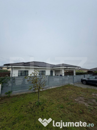 Blitz ofera spre vanzare casa moderna in Jucu de Sus liniste spatiu si comfort la doar 20 de minute de Cluj .Proprietatea se vinde utilata si mobilata fiind potrivita pentru o familie care cauta comfort fara stresul amenajarilor . Suprafata utila 120 mp locuibili compartimentati modern,teren 600 mp imprejmuit si amenajat . Casa este finisata modern cu materiale de calitate