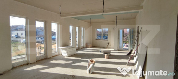 Blitz imobiliare Oradea, ofera spre vanzare casa pe un singur nivel, situata in Cihei, comuna Sanmartin. Proprietatea este la stadiul de semifinisat insa exista posibilitatea de a fi predata si la stadiul de finisat la cheie. Caracteristici principale: 2 dormitoare, 1 baie, 1 bucatarie cu living open space, 1 camera tehnica si terasa. Casa este izolata la exterior cu polistiren de 10 cm EPS 80, planseul casei este din structura usoara si este izolat cu spuma cu celula inchisa si este podit cu scandura, instalatia electrica este de tip modular. Pentru mai multe informatii si vizionare va rugam sa ne contactati.