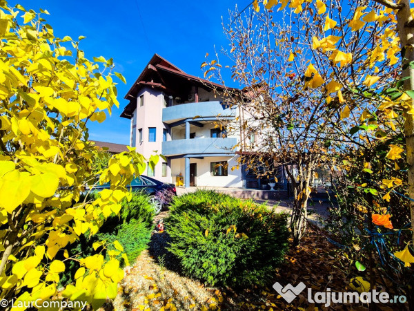 Proprietatea beneficiaza de toate utilitatile , precum si de 2 centrale termice , 3 unitati aer conditionat , tamplarie pvc tripan , parchet laminat , gresie , faianta , scari interioare placate cu marmura .