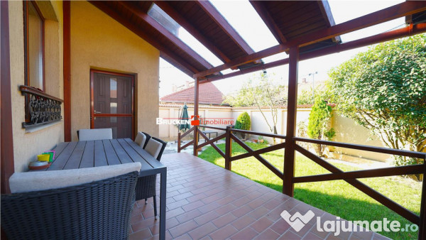 Pasind in curte, sunteti intampinati de aleile ingrijite, poarta automatizata care dezvaluie un spatiu verde perfect amenajat, pomii ornamentali si zona de grill unde serile de vara capata un farmec aparte.