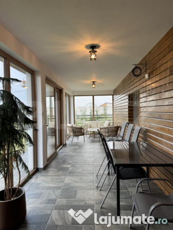 Garajul subteran dublu de 29 mp cu statie de încărcare masini electrice este sustinut de panouri solare, aceastea fiind responsabile si de sustinerea centralei electrice cu incalzire in pardoseala.