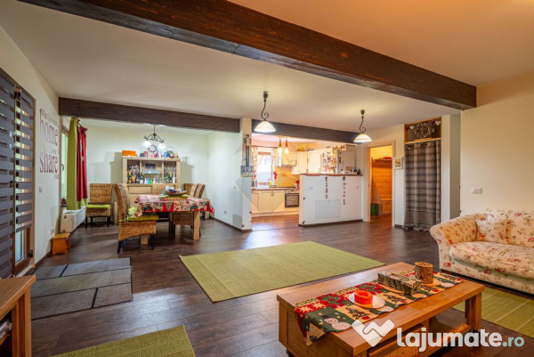 Vederea impresionantă către munți și calitatea construcției transformă această proprietate într-o alegere excelentă pentru cei ce își doresc o locuință într-un cadru natural deosebit.