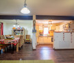 Tot aici avem o bucătărie complet echipată și utilată, un loc de luat masa, un dormitor confortabil, o baie, un hol și casa scării.
