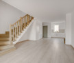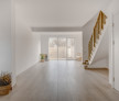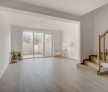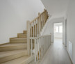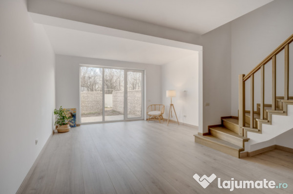 Parchetul de calitate, ușile albe, scara placată cu lemn, amenajarea băilor cu plăci ceramice de culori neutre, montate cu atenție, formează un tot unitar.