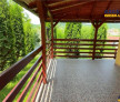 La etaj, se desfasoara trei dormitoare confortabile, din care unul beneficiaza de acces la un balcon privat cu o priveliste absolut spectaculoasa asupra imprejurimilor. Palierul este completat de o baie moderna, echipata cu cabina de dus cu sauna si hidromasaj, pentru momente de relaxare totala.