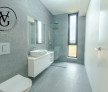 - Parter: hol de acces, birou, baie cu duș walk-in, living luminos cu bucătărie open space, toate având acces direct la o terasă spațioasă. În plus, un garaj pentru 2 mașini și un spațiu tehnic.