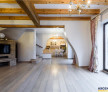 Casa se remarca printr-o arhitectura calda si primitoare, cu finisaje atent alese, grinzi din lemn masiv, spatii luminoase si o atmosfera care imbina perfect confortul modern cu farmecul unei locuinte deosebite. Interiorul este aerisit, bine compartimentat, cu zone generoase de zi si deschideri mari catre gradina, oferind multa lumina naturala si o stare de bine permanenta.