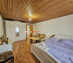 Casa este incalzita cu centrala pe peleti, fiind o solutie economica si eficienta, iar exteriorul, desi necesita o reimprospatare a vopselei decorative, este deja izolat si pregatit pentru urmatorul pas.