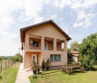 La etaj: se urca usor pe scarile spatioase, un hol larg ca o terasa patrata , se intra individual in cele 3 dormitoare, 2 bai, 1 dormitor cu baie proprie, plus o terasa cu priveliste spre padure. Toate camerele dispun de geamuri termopan, asigurând izolare termică și fonică excelentă. Incalzirea se face prin centrala proprie si dispune de toate utilitatile: apa curenta, canalizare, gaze naturale, energie electrica, cablu si internet, aspecte care completeaza confortul acestei minunate case.