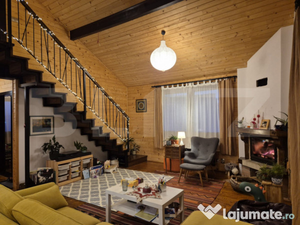 Proprietatea are o suprafață de 120 m², este finisată cu bun gust și pregătită pentru a fi locuită imediat. Atmosfera naturală a lemnului, lumina abundentă și liniștea locului creează un spațiu ideal pentru relaxare, familie sau retragere din agitația orașului.