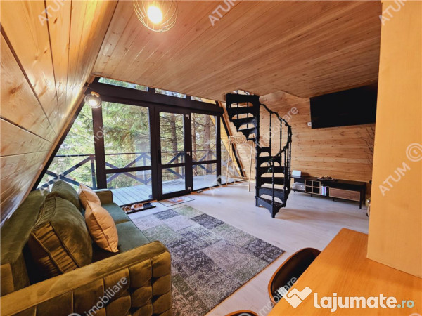 De inchiriat in Localitatea Avrig zona turistica Valea Avrigului,Porumbacu de Sus, cabanalt; CUIB DE VULTURgt; nou construita in forma de A Frame, situata intr-o zona retrasa si linistita la marginea padurii in apropiere de Brambura Park si Dino Park.