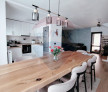 Primul etaj este dedicat zonei de zi, open space, foarte bine gândita, cu o bucătărie, dining, living, baie, dar și două încăperi foarte practice pentru depozitare și cuier.