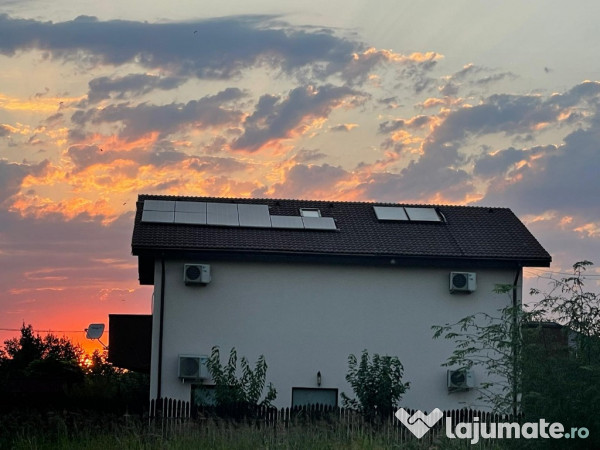 Casa VERDE, panouri solare, pompa submersibila sapata la 30 m, apa curenta si canalizare in fata portii, lumina si gaze, se vinde mobilata si utilata, centrala Daikin pe gaze, dedurizator cu filtre UV, beci, acoperisul este realizat din tigla Bramac, podul este iluminat natural cu Velux, sistem de alarma pe senzor de miscare, 4 aere conditionate