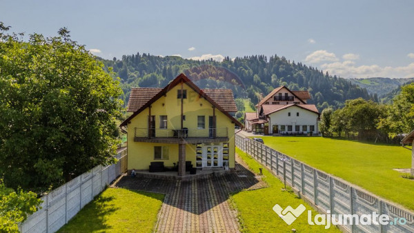 Vă prezint o proprietate deosebită situată în Moieciu de Jos, județul Brașov, pe un teren generos de 1.074 m². Vila dispune de 10 camere, dintre care 9 dormitoare (7 cu baie proprie, 2 cu baie comuna) și o suprafață utilă de 208 m².