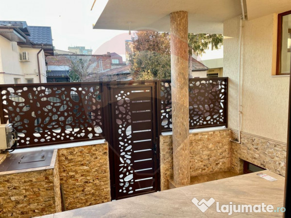 Imobilul beneficiază de o curte proprie de 15 mp, iar în fața casei sunt disponibile locuri de parcare. Compartimentarea interioară este excelentă, cu 6 camere, 4 băi, un balcon de 6 mp și o terasă la mansardă de 20 mp, ideală pentru relaxare.