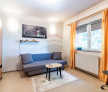-parter: hol de acces, bucatarie inchisa, baie, living + zona de dinning, spatiu de depozitare, camera tehnica. Accesul pe terasa de 15 mp se face din living.