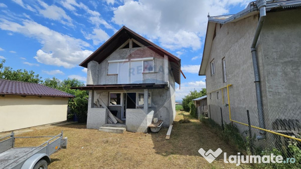Casa este construita pe o structura de beton armat cu BCA.