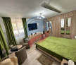 Un living spațios și primitor, conectat cu o bucătărie deschisă.