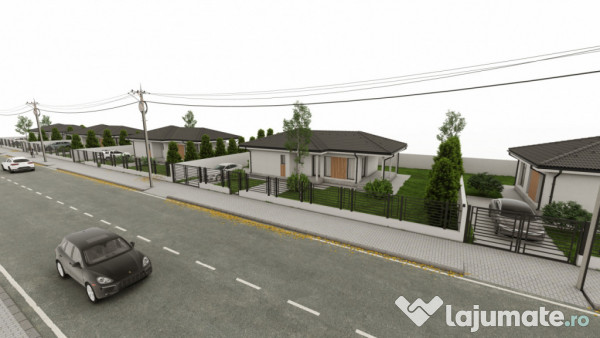 ID: EXP456. Compania imobiliara iNEX | eXp va ofera oportunitatea de a achiziționa o casă modernă de tip parter, situată într-un cadru natural deosebit, în apropierea Colinei Verzi. Cu o suprafață de 100 mp pe un teren de 250 mp, această locuință combină confortul, funcționalitatea și intimitatea.