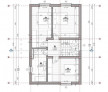La parter se află o cameră de zi, bucătărie, baie, cameră tehnică, hol și casa scării. La mansardă sunt trei dormitoare, o baie, hol și casa scării.