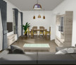 Pe parter : living, bucatarie inchisa, hol si grup sanitar