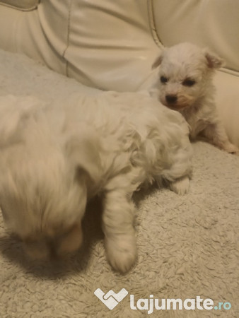 Căței bishon maltez și frizer vaccinați deparazitați cu carnet de vaccin fetițe toate trei